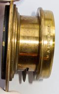 Scovill Waterbury Lens in B size for 5x8 inch coverage and a focal length of 10 inches and f/15 in speed. Includes original flange. Lens is in nice clean condition with very good glass and ready to use after a light dusting..... Lens barrel has obtained a vintage copper-y hue to the finish... Very appealing for the collector and certainly very usable to shoot with. Lens circa 1892.