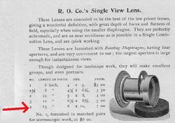 Rochester Optical Company "8x10" Single View lens which is 13" in focal length and f/16 in speed. Very clean and original lens suitable for collection or use. While I would never do it - some people are removing the stop wheel and then drilling a larger aperture for an instant Soft Focus lens at a reasonable price - and one that covers 8x10 ! Lens circa 1892.