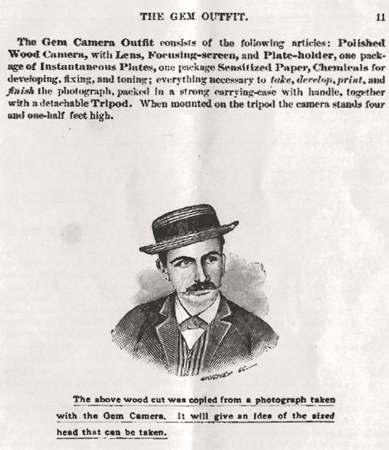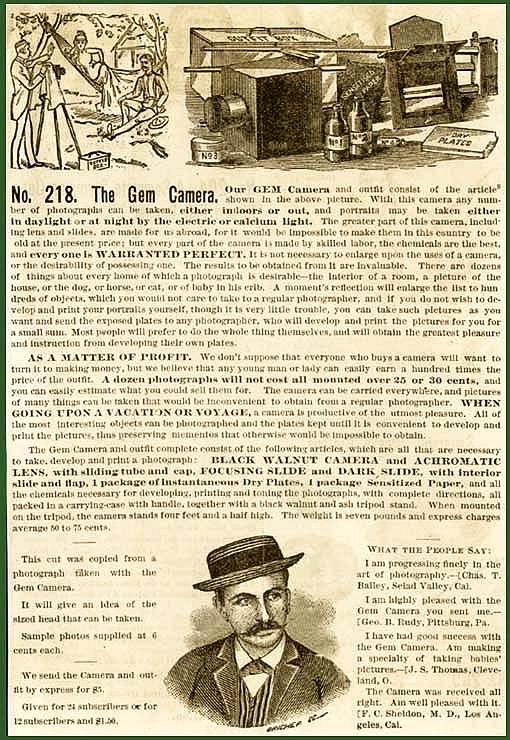Early advertisement (Nov. 1884) for the Gem Camera Outfit