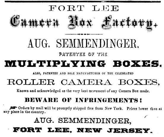 August Semmendinger was an interesting character in the history of camera making in the United States. Semmendinger (1820 – August 6, 1885) was a manufacturer of Photographic equipment and earned his first two photographic patents in 1860; patents 27,241 and 29,523. And in 1873 and 1874 two more patents; 145,020 and 149,255.