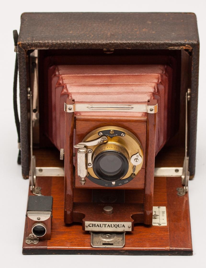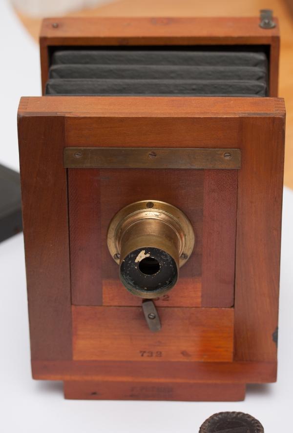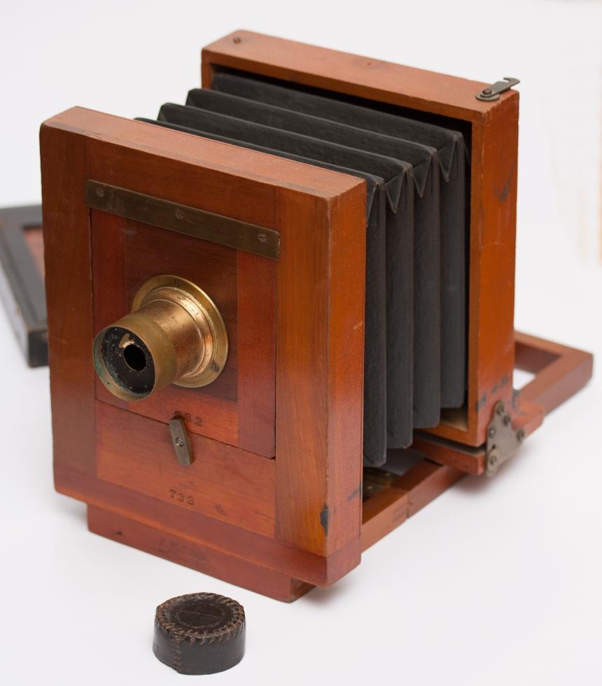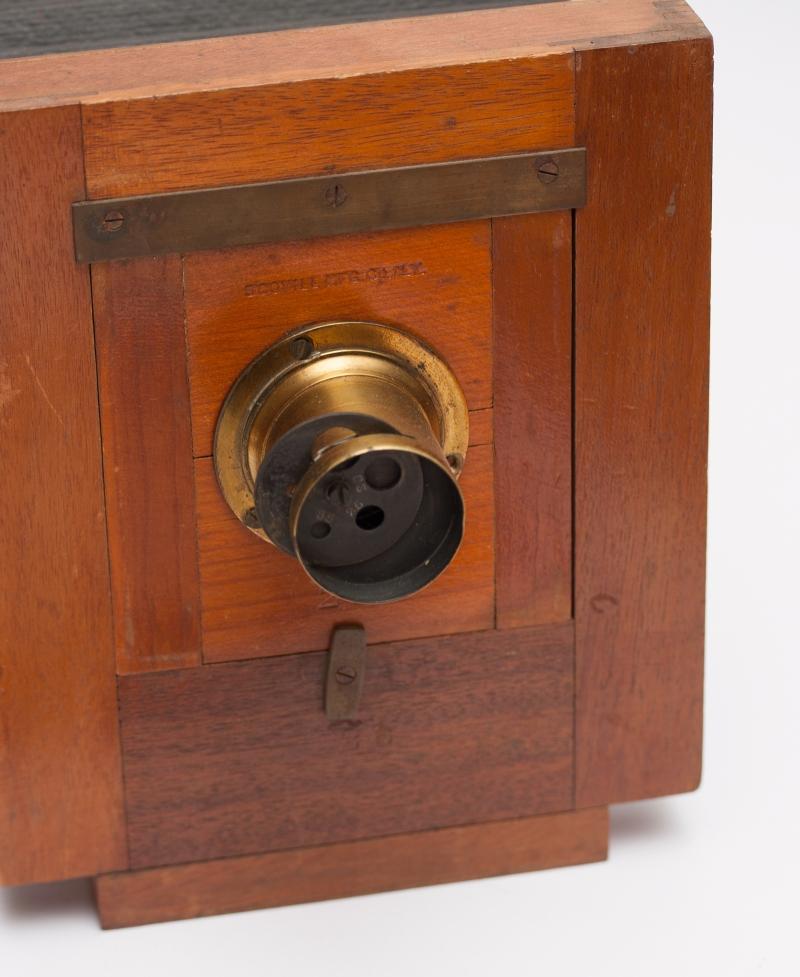 These economical plate camera models commonly featured a flat polished wood lensboard/standard with a simple landscape lens encased within. Their simplicity and combination of lacquered wood, brass and red leather bellows make them attractive cameras to own.