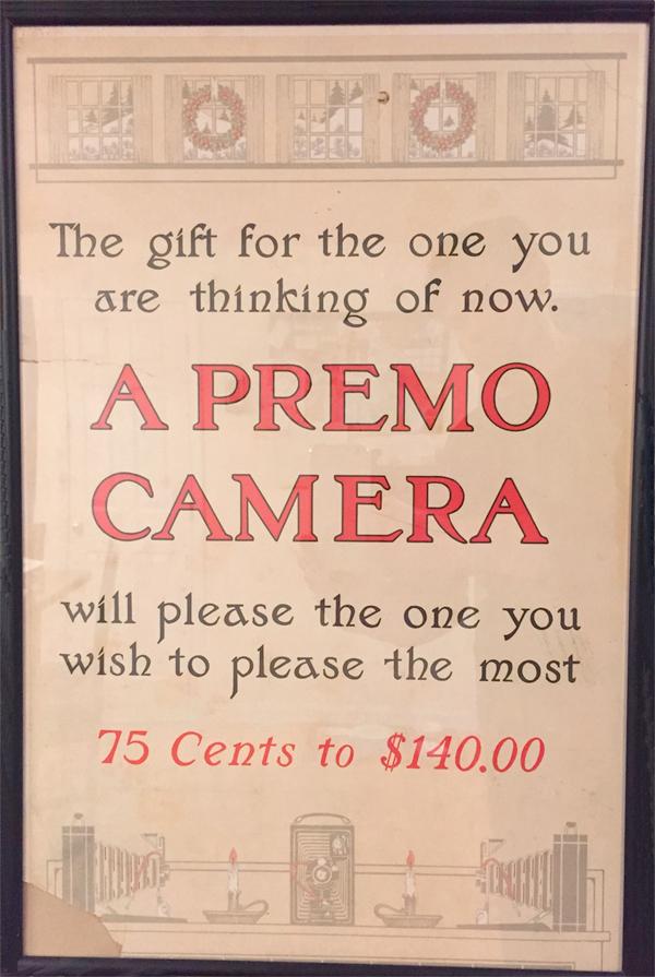 1916 Cardboard Window Sign from Kodak (owner of the Premo line). Copyright AntiqueCameras.net