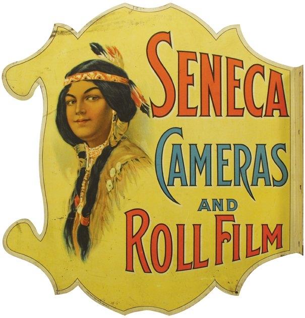 First up is this beautiful tin sign advertising Seneca cameras. Seneca featured American Indians in much of its advertising. Seneca's 1912 catalogue features, basically, the same exact image (below sign).