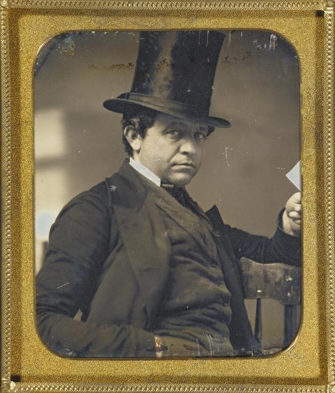 Portrait of Unidentified Daguerreotypist, 1845, Daguerreotype, hand-colored 1/6 plate Image: 6.7 x 5.2 cm (2 5/8 x 2 1/16 in.) Mat: 8.3 x 7 cm (3 1/4 x 2 3/4 in.) The J. Paul Getty Museum, Los Angeles