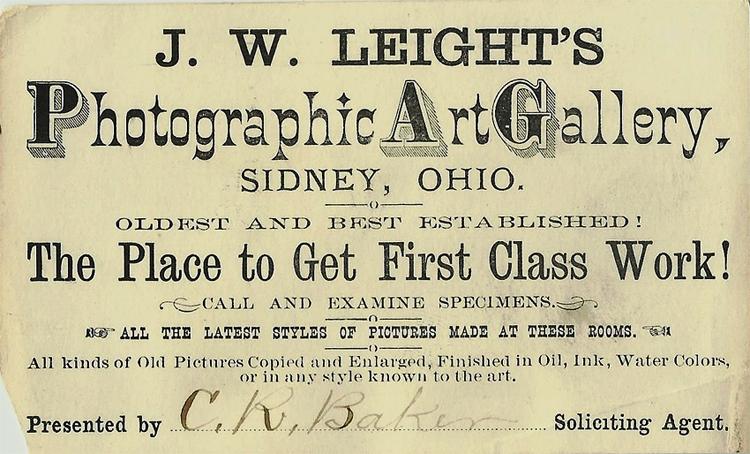 Jonathan W. Leight (1833-1892): photographer was in Sidney Ohio from 1871-1879; Poplar Street in Sidney from 1871-1873 and in 1875.