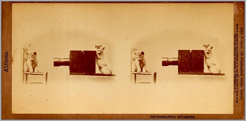 While I don't collect stereoviews, I did add one to my collection last fall because of the content, kittens with a camera. 1871 Copyright date on the view.
