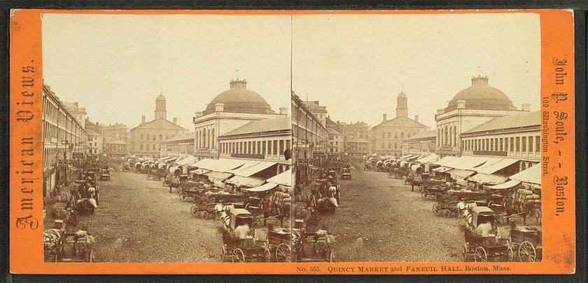 Soule was also well known for his series of stereoviews. Given his Boston location, many of Soule's work features New England. Below is an image of Faneuil Hall in Boston. In Public Domain from NYPL