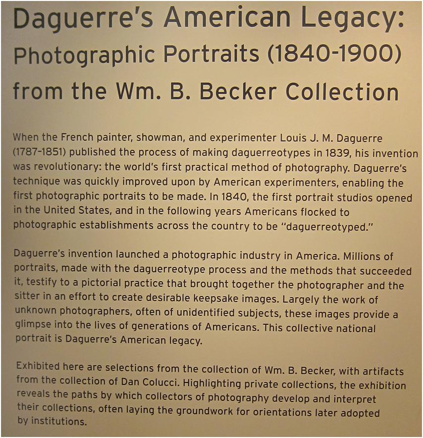 Collecting took on a new meaning for me recently when I lent some of my "treasures" to the Massachusetts Institute of Technology - "MIT" Museum for an exhibit called, Daguerre's American Legacy: Photographic Portraits (1840-1900) from the Wm. B. Becker Collection. Mr. Becker has a fanastic collection of Daguerreotypes on display and to supplement the exhibit, I was asked to supply some Daguerreian equipment and related photographica to the exhibit. This was the first time I have ever done this and I must say that its very gratifying to be able to share my collection with so many other people in this way. While I have always shared some of my collection through this website, that's "only" a "virtual" method of sharing. At the MIT Museum, I am able to share the actual, in-the-flesh, items for others to see and enjoy.