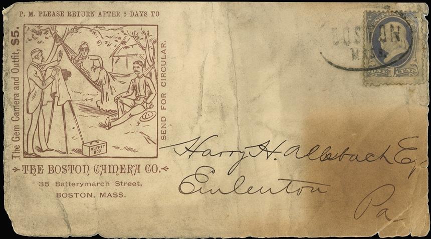 Quite recently, I acquired another piece of The Boston Camera Company's history, a postal cover, listing the business address as 35 Batterymarch Street. BCC was only at this address in 1884 and part of 1885 according to my research.