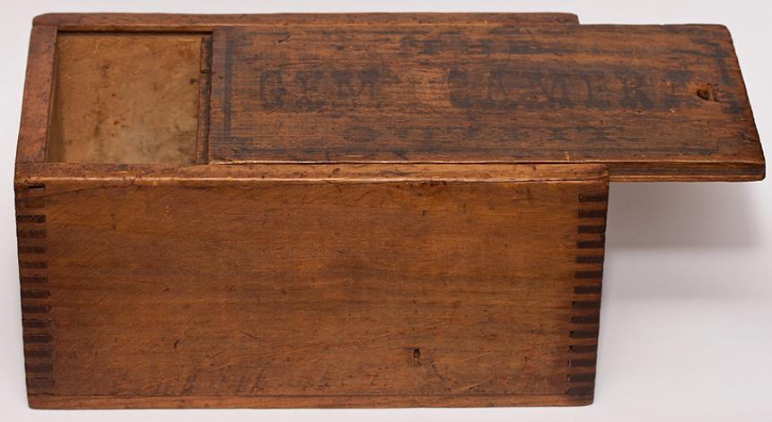 In 1884, Samuel Turner started The Boston Camera Company. One of his first products was the Gem Camera Outfit. Selling for $5.00, the amateur photography outfit featured a camera, focusing screen, plate holder, dry plates, printing paper and chemicals for developing, fixing, toning and printing all packed in a "strong carrying-case with handle" as well as a tripod.