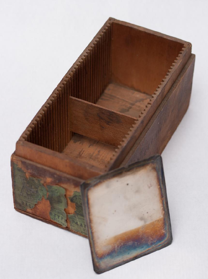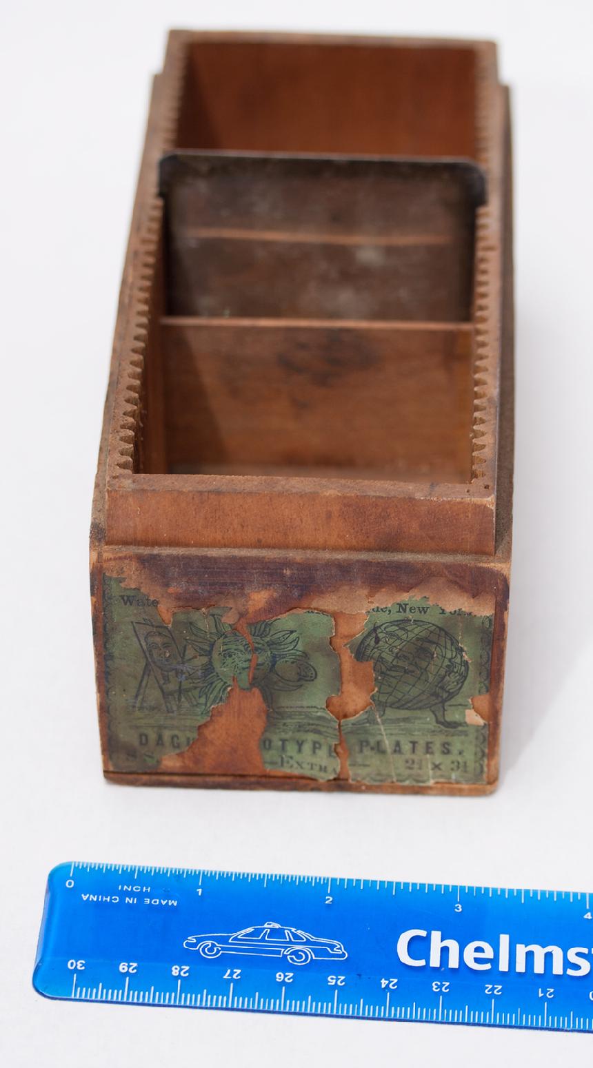Here is a Daguerreotype Plate Box from Scovill. These were for Scovill's "Extra" plate which began selling in 1850 or 51. This box carried 6 dozen plates - 36 slots and each slot held two plates. It also has one unused plate. What I really love about this box is that on the side is written "Specimens" which reflects back to the terminology used by Daguerreotypists at the time.