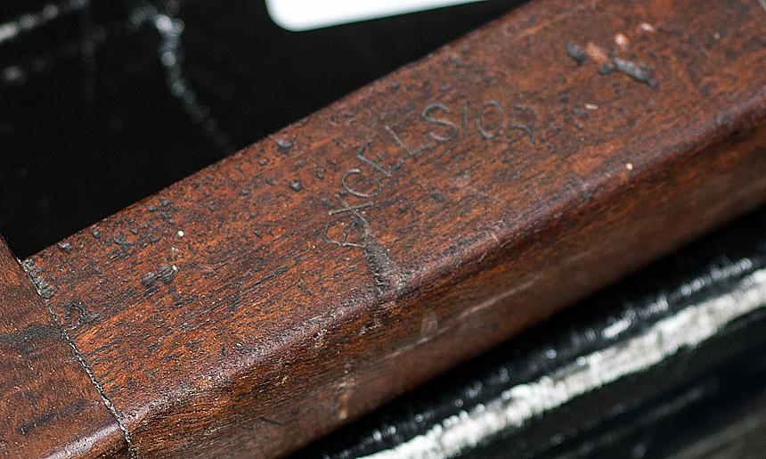 This studio model is likely from the early 1880s. The camera is free from wet plate stains. It is marked as an Excelsior camera as all of his cameras appear to be. The square back of 12x12" dimensions is capable of multiple formats with the use of the proper holder. The serial number of the camera appears to be # 221 as stamped on the top of the rear frame where there are also stamped number "8"s in the wood but which are probably part matching indicators.
