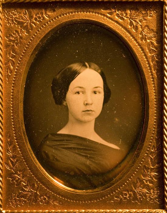 | Daguerreotype of a fine lady with her gold jewelry highlighted |