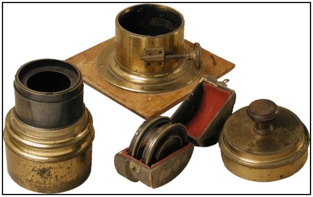 I recently purchased a small stash of old lenses and parts from Louisiana via the internet and a few crummy cell phone pictures. Apparently, the items were stored inside a wooden negative box in a barn for many years. Many of the lenses and parts are from the 1860-1880 period. One of the items of great interest to me in one of the cell phone pictures was a 1/4 plate sized Voigtlander Petzval lens with serial # 4237 which would date to roughly 1853.