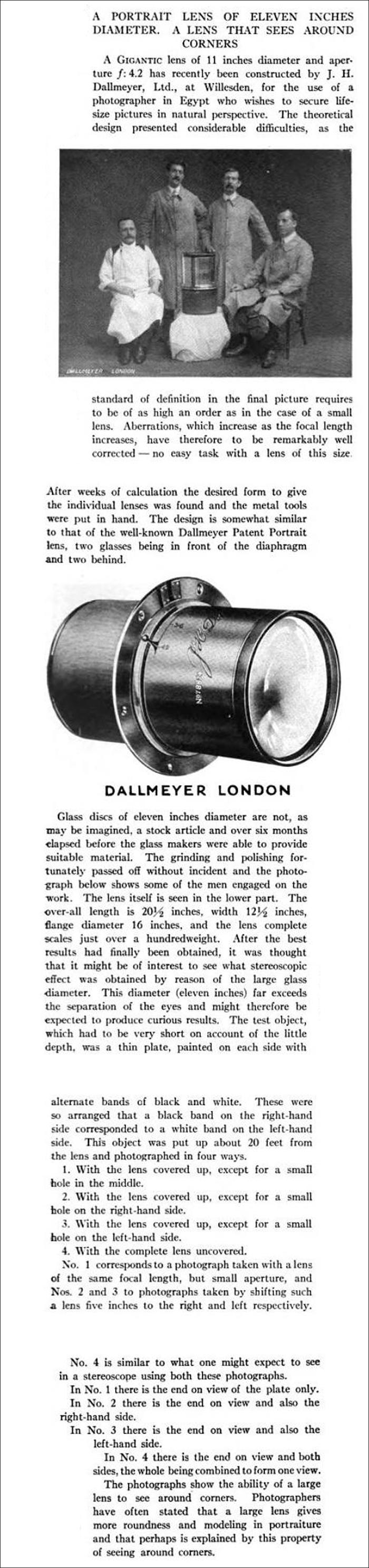 An article (press release) about this beast of a lens was circulated among many photography magazines in 1913 and 1914.