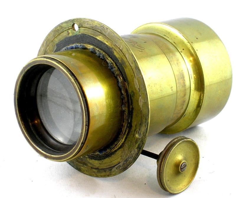 Almost since the beginning of Daguerreotypy, opticians competed, mostly for bragging rights, to make the largest portrait lenses. C.C. Harrison, Andrew Ross and Voigtlander were are few of the earliest to compete (1850s and 60s) in making some very large portrait (Petzval) lenses. In 1864, Voigtlander produced a Petzval lens with 8 inch diameter lenses. This was given serial number 16,000 and was a point of pride for Voigtlander and put on display. As the years passed, attempts to make larger and faster lenses continued leading up to the Dallmeyer lens shown above. But again, these were typically custom made or "one-off" lenses and were not produced for regular trade.