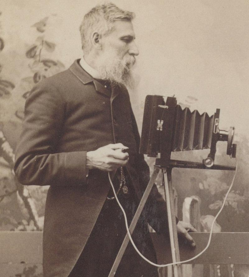 Another fairly well known double exposure of (presumably) a photographer is owned by the Library of Congress. This is from 1893 and is marked on the reverse, A.H. Wheeler, Berlin Wisconsin. This particular image has been reproduced many times as an example of a late 19th century double exposure.