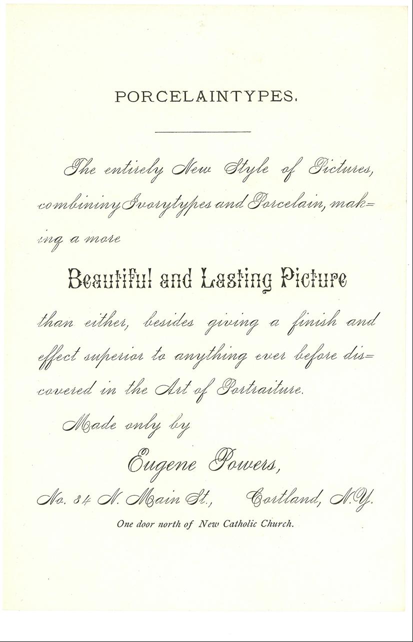 I recently acquired a very nice advertising piece emphasizing Porcelaintypes. Images on porcelain seem to have been most popular in the 1865-1875 period. Samuel Clemens, aka Mark Twain, had a porcelaintype image taken of him in 1869 which has become well known.