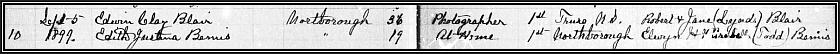 Thomas Blair's 1891 passport. Note his daughter, Florence M. Blair (b. April 1876). The 1900 census reveals that that Ester Blair (b. 1848 Nova Scotia) is Florence's mother and that Ester was divorced (maiden name unknown). This, along with other census documents, confirms that Thomas Blair married Ester (probably 1875) and later divorced her. Also listed in the 1900 census, Thomas Blair's wife is recorded as Rose Edith Bowden from England. Rose immigrated to the US in 1897 (with her mother) and likely married Thomas between 1897-1900. Note that Rose was born in 1876 and was 18 years younger than Thomas. It would appear Thomas met Rose while he was establishing his UK based photographic supply company.