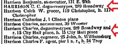 By 1850, Harrison was being listed with his studio at 289 Broadway but also as a maker of Daguerreotype apparatus at 85 Duane Street.
