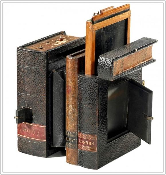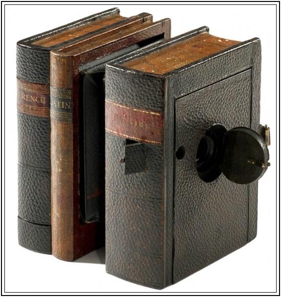 In the late 1880's and in the 1890's, "Detective" and "Concealed" Cameras were being produced by many manufacturers in all kinds of shapes and sizes. One of the elite cameras in terms of collecting, is Scovill's "Book Camera," that was introduced in 1892. Despite being advertised for a few years, the camera is incredibly rare with only 6 known examples (according to Westlicht Auction House). I was fortunate enough many years ago to see one in the flesh owned by famed camera collector, Jack Naylor. You can learn more about Thurman "Jack" Naylor by clicking here.