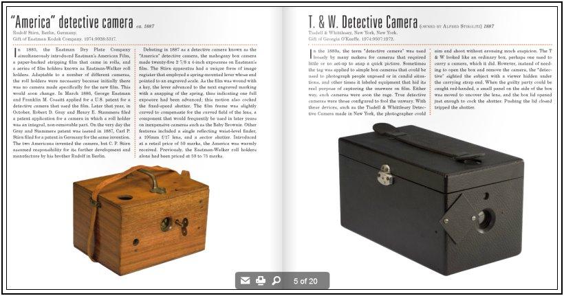 The George Eastman House has published a few books recently, with the most current selection being, "500 Cameras." While it's not the most scholarly work I have ever seen, it does contain beautiful images of 500 unique or historical cameras as well as the histocial background on each piece. It is well worth the amazon.com price of $ 17.43 ! Click below to read more about the book or to buy it on amazon.com