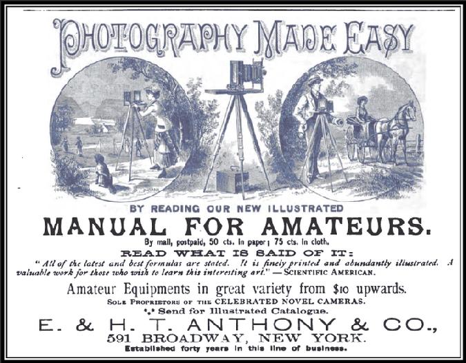 I really enjoy old advertisements. Here's one from E.H&T Anthony from 1884:
