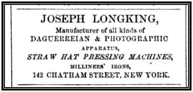 An advertisement from Longking that was published in Trow's New York City Directory published in June 1859 is shown below.