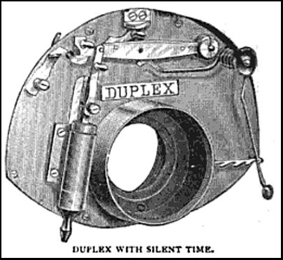 By the summer of 1887, the Duplex achieved its final form and was called the "Triple Improved Duplex" and would remain in this configuration for the rest of its product life. Note however, that the silent time function (which added an air cylinder on the left of the shutter) and the rotary stops were still options.