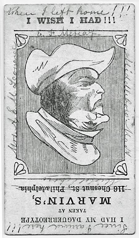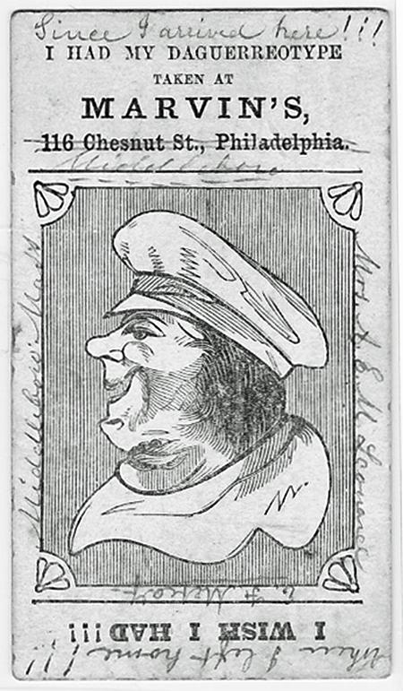 Rotate the card 180 degrees, and now you see an angry man who wished he had his Daguerreotype taken at Marvin's.
