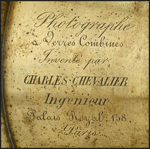 Charles Louis Chevalier (1804-1859), son of Jacques-Louis-Vincent Chevalier (1770-1840), was an important member of a Parisian family of opticians that played a key role in supplying the very first lenses for Daguerre's equipment. But, Chevalier's connection to Daguerre goes back years before 1839. In fact, the Chevalier family had numerous business dealings with both Niepce and Daguerre in the 1820's in supplying them lenses for use in camera obscuras.