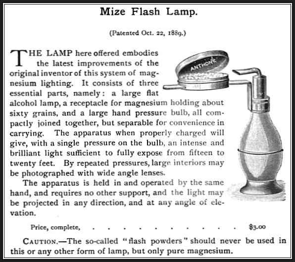 In 1925, magnesium wired flashbulbs were invented which eventually led to the demise of the use of flash powder and ribbon based products, but from about 1890 to 1920, there were a significant number of products featuring magnesium based technology.