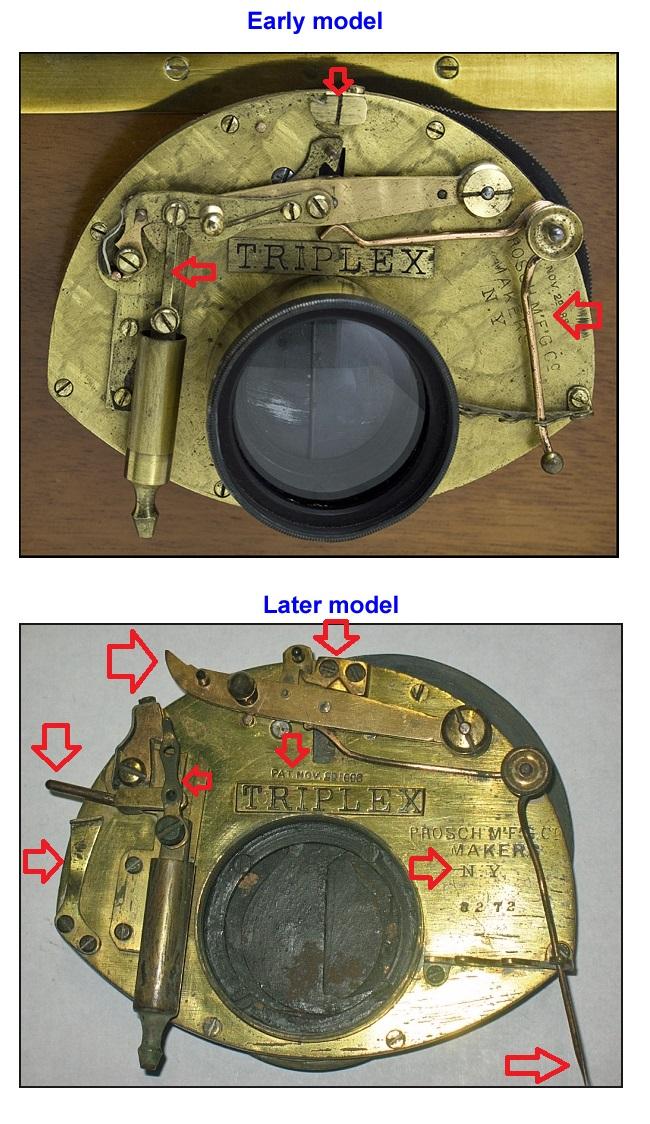 Note the changes in hardware and the repositioning of the Prosch company engraving between the earlier Triplex and the Improved Triplex.