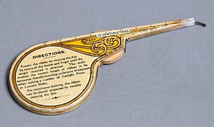 One such magnesium ribbon holder was the "Flash Pistolmeter." Made in England circa 1907, the holder featured beautiful graphics in bold colors.