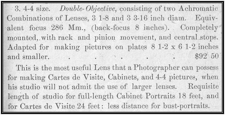 In an 1876 catalogue, this lens was back to being called the # 3 lens