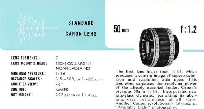 | Canon 50mm F/0.95 TV Lens, Unmodified |