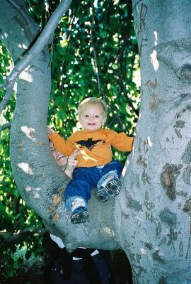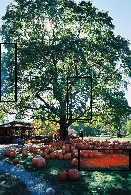 | Image # 1 Data: Kodak 400UC film. Fill flash used. Focus on face. Sunny, fall day with sun directly hitting the background. I am impressed on many levels. First, the image is very sharp. I can see right into my son's eyes and every detail is present and crisp. The camera also did an excellent ( not perfect ) job at balancing the huge difference in light values and the results are an excellent print. His face is a little bit overexposed - but that is quite easy to balance out in a final print. Colors are very accurate and saturated.